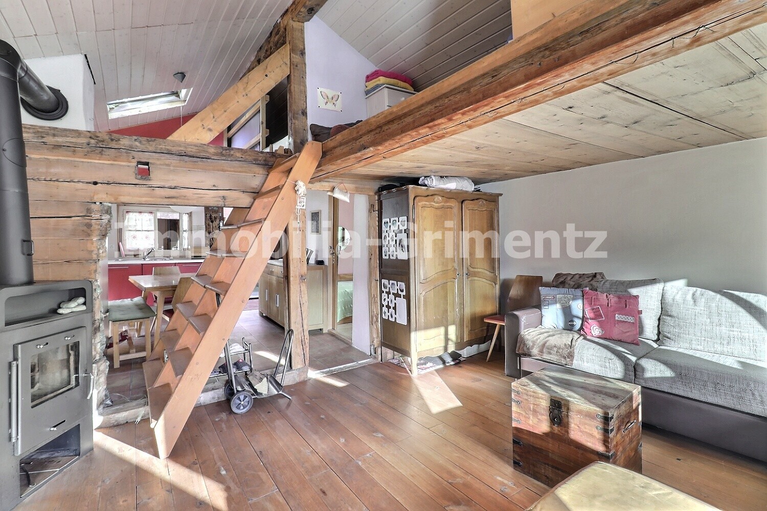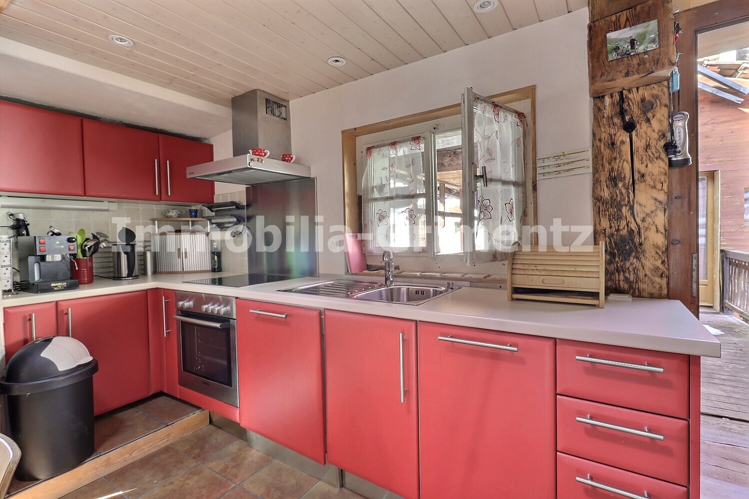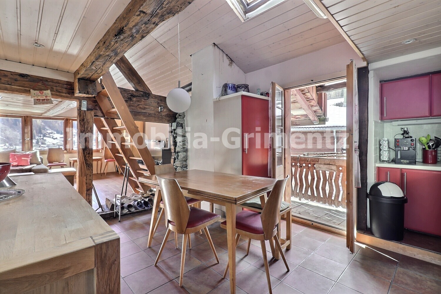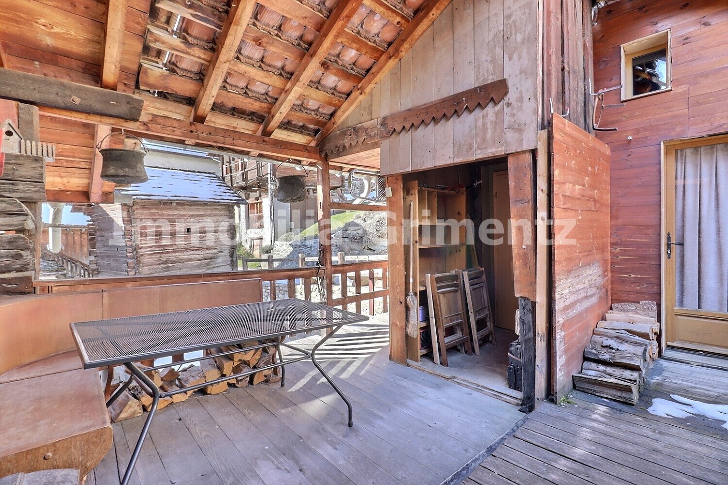 In the heart of the old village of St-Jean d'en-bas, apartment in the attic of a traditional house, entrance kitchen, living room with stove, small mezzanine areas, bedroom, shower room, annex with beds, storage rooms, unobstructed view of the bottom of the Val d'Anniviers.