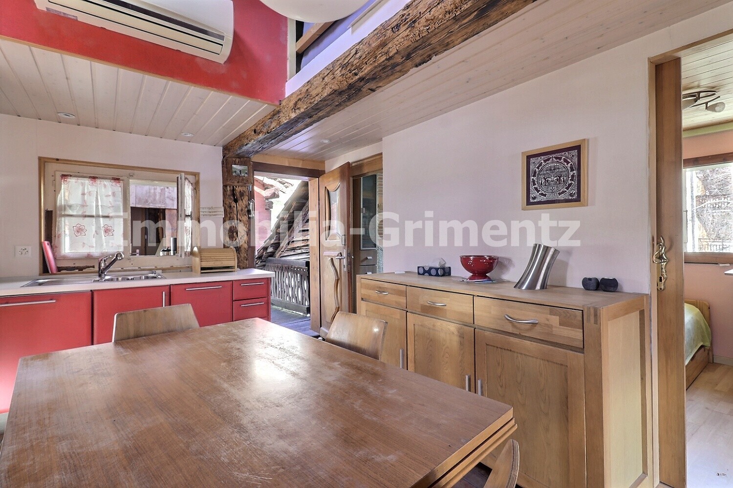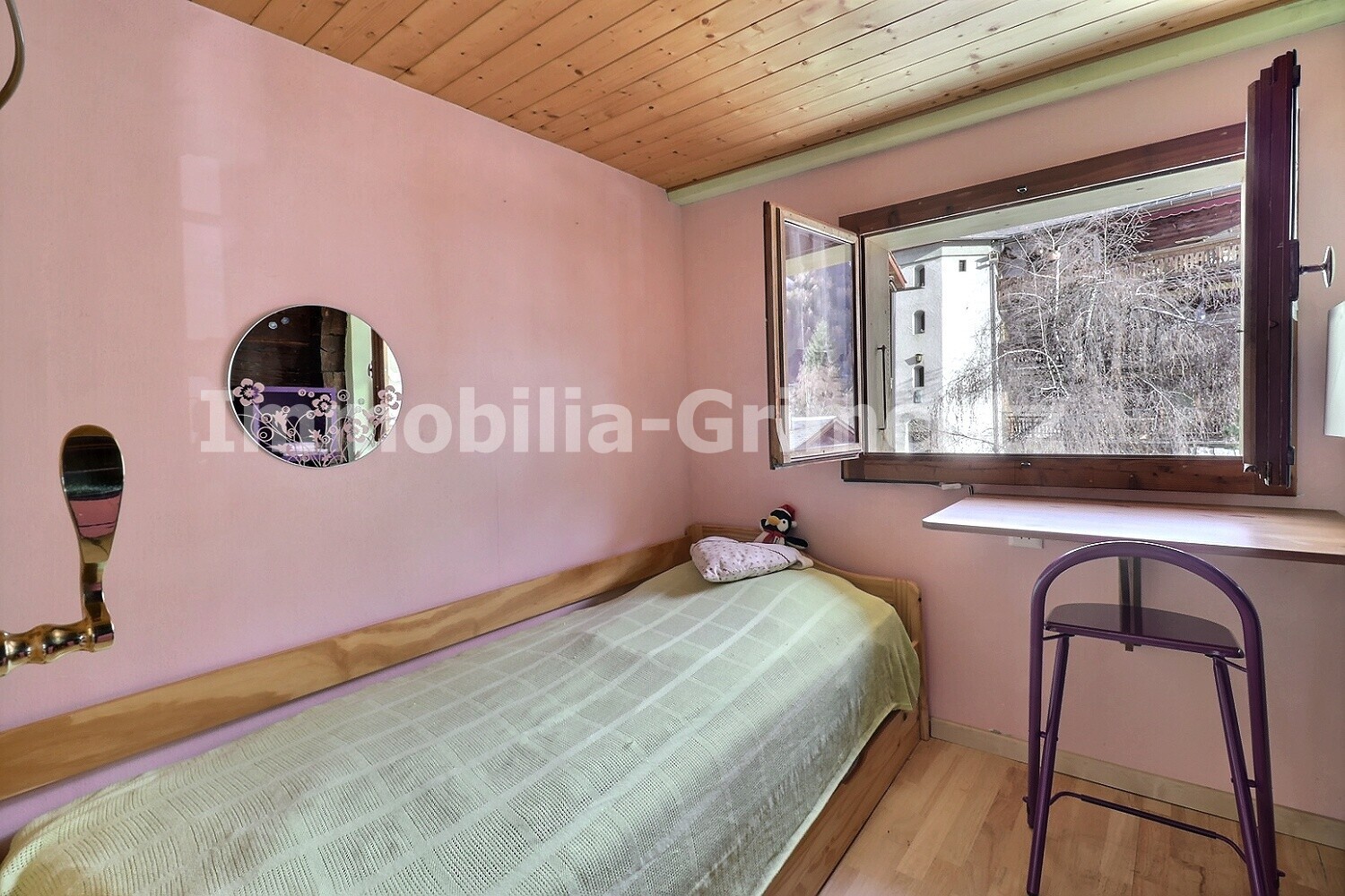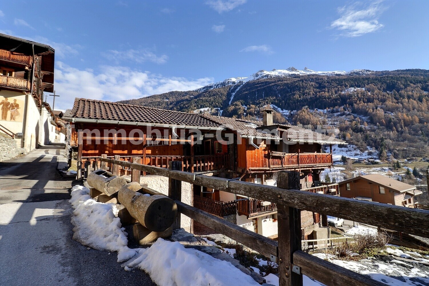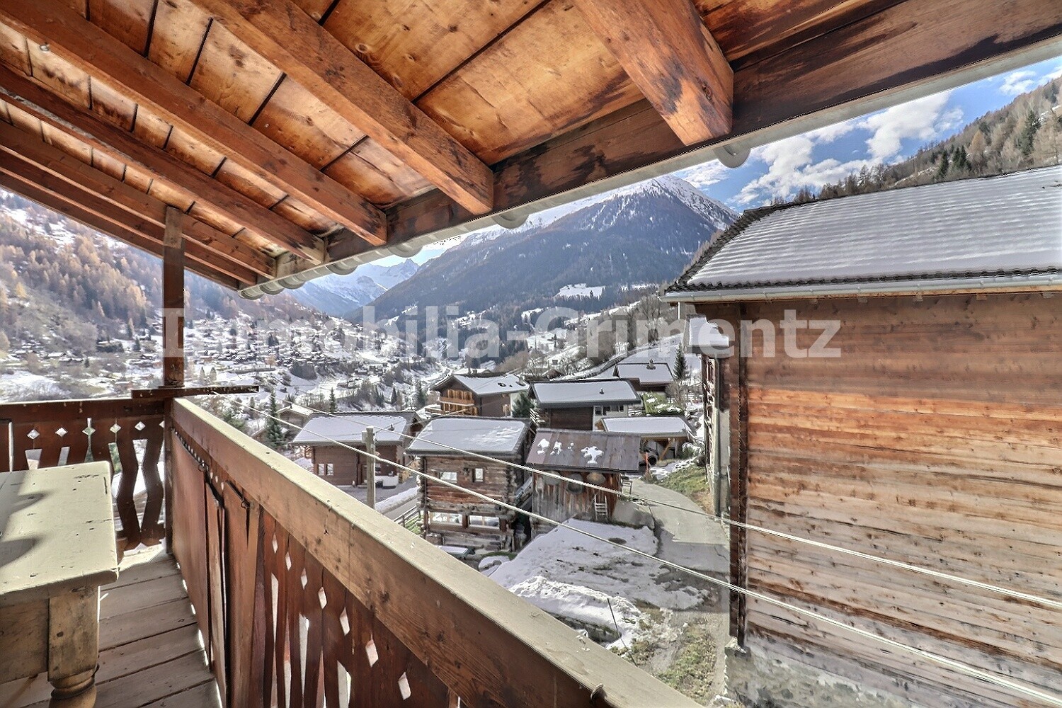 In the heart of the old village of St-Jean d'en-bas, apartment in the attic of a traditional house, entrance kitchen, living room with stove, small mezzanine areas, bedroom, shower room, annex with beds, storage rooms, unobstructed view of the bottom of the Val d'Anniviers.